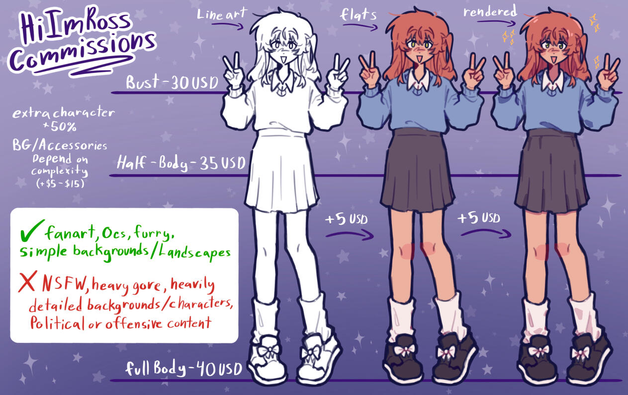 Hello! Thank you for being interested in my commissions!